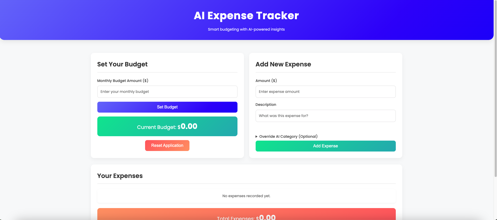 Built an intelligent budgeting app that uses AI to categorize expenses, analyze spending, and provide personalized financial insights through an interactive dashboard.